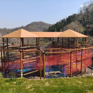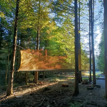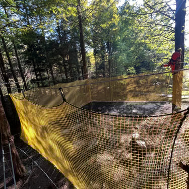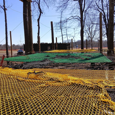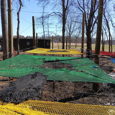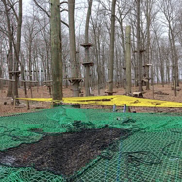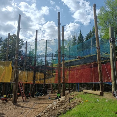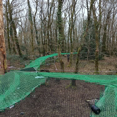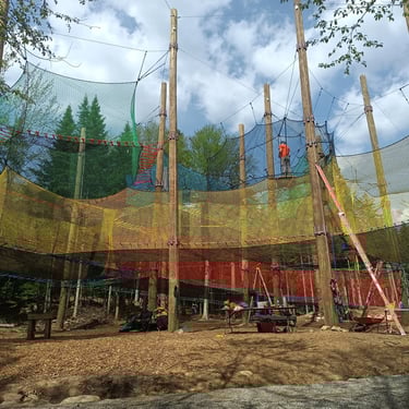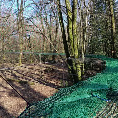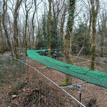 4 grandes "mers" de filet dans les arbres pour un total de 100 m² de filet