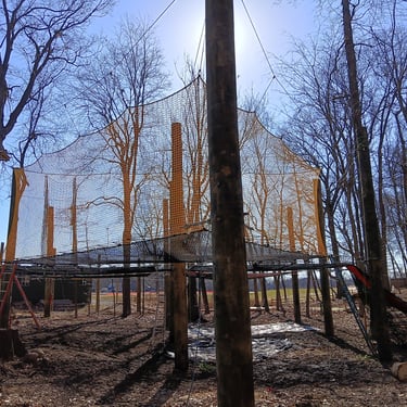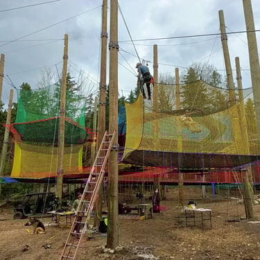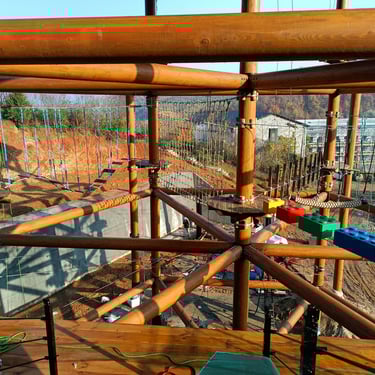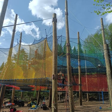Tour multi-activités connectée à un parcours filet/cabanes et un parcours filet en hauteur/ Filet trampoline.